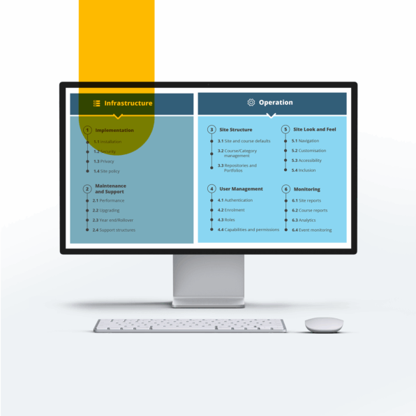 Program MEQ jest przeznaczony dla doświadczonych edukatorów, którzy korzystają z Moodle LMS lub Moodle Workplace od co najmniej roku lub dwóch. Jeśli dopiero zaczynasz swoją przygodę z edukacją online, zalecamy rozpoczęcie od nauki podstaw Moodle, aby zapoznać się z najczęściej używanymi narzędziami, zasobami, aktywnościami i interfejsem platformy.